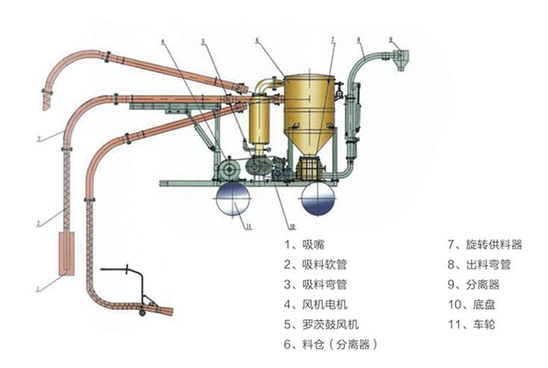 負(fù)壓系統(tǒng)適宜于從多喂料點(diǎn)輸送物料到一個(gè)卸料點(diǎn)。它的優(yōu)點(diǎn)是通過供料器的空氣泄漏和壓力降都很小,因而旋轉(zhuǎn)葉片供料器能得到令人滿意的使用效果。