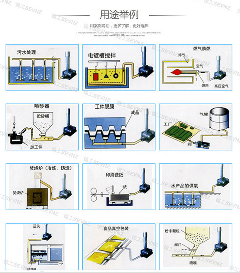 地毯清洗,污水曝氣,乳制品,堆肥曝氣,驅(qū)蚊裝置,真空清洗,氣體噴射,粉磨收集 等