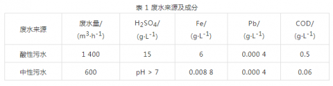 鈦白粉生產(chǎn)過程中排出的工業(yè)廢水主要分酸性廢水及中性廢水,其成分及水量詳見表 1.