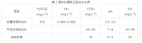 各工段出水水質(zhì)見表 2。